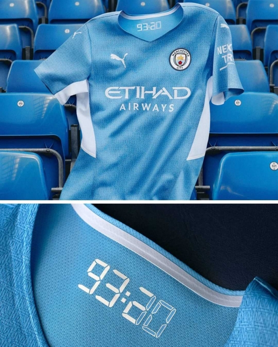 맨시티 유니폼! 사진 속 그녀는 맨체스터 시티 유니폼을 입고 있었으며.